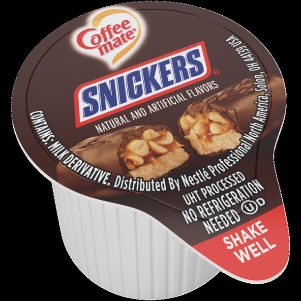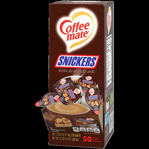 Coffee-Mate Snickers Liquid Coffee Creamer Pump Bottles 507 oz 2 Count 59 48 out of 5 Stars. Snickers flavoured liquid creamer singles. This convenient box contains 50 x 38floz 11ml Coffee-Mate single-serve liquid.