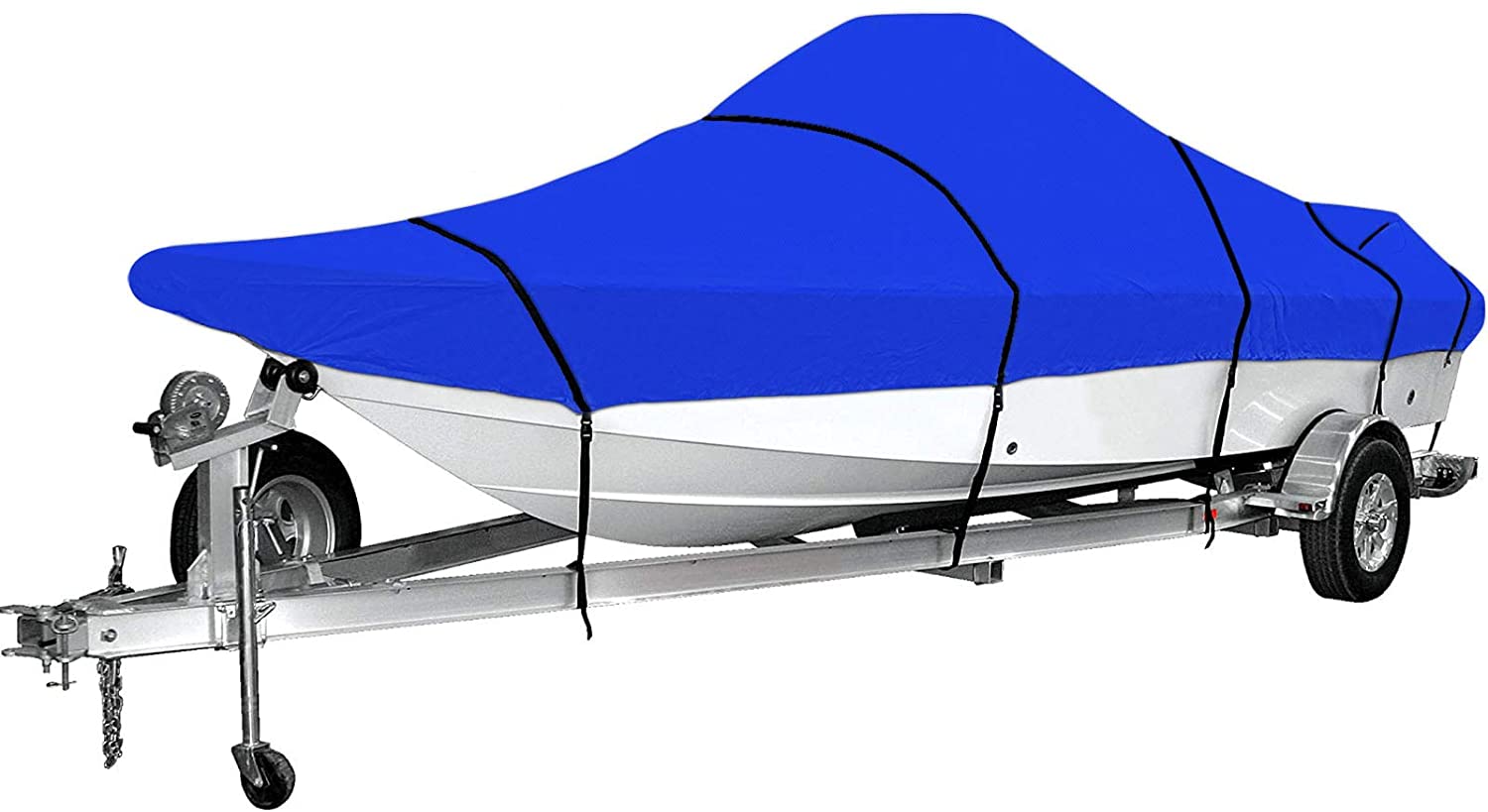 Amazon Com Boat Cover For 17 19 Boats Heavy Duty 600d Marine Grade Oxford Fabric Trailerable Compatible With 17 18 19 Length 95 Beam Width V Hull Tri Hull Trailer Fishing Ski Runabout Blue Sports